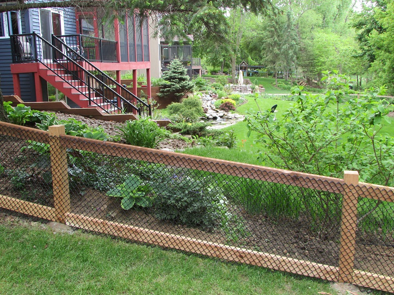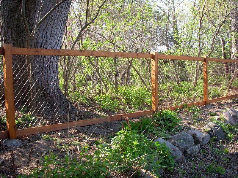 California chain link integrates wood with chain link. You get the wood framing and posts with the openness of chain link. We always use bottom rail to ensure a tight bottom. You can either do wood gates or chain link gates, whichever you like!